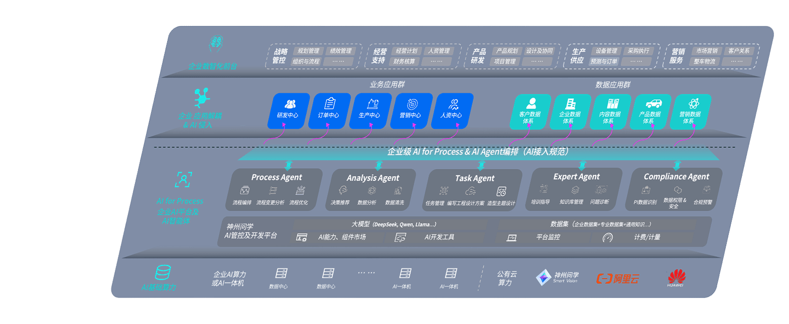 新航娱乐问学智车解决方案是一套基于AI技术的汽车行业智能化系统,,覆盖从底层算力到顶层AI应用的全栈方案。。。。方案由算力层、、、模型层和应用层组成:算力层,,,方案支持多种一体机配置,,具备云端灵活部署、、、多云适配以及动态优化计算资源的能力;模型层,,新航娱乐问学平台版提供了企业级AI应用一站式构建与管理平台,,,,支持基于后训练强化技术的汽车企业专属模型的训练、、、评测和运营;应用层,,,,新航娱乐问学DeepSeek版提供包括超级员工、、、、智能招采、、、智能营销、、、、智能客服、、AI for BI等一系列解决方案,,可助力汽车行业实现数字化转型,,,让管理更智能、、、响应更敏捷。。。